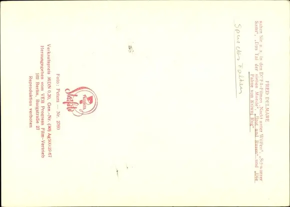 Ak Schauspieler Fred Delmare, DEFA Nackt unter Wölfen, Schwarzer Samt, Portrait