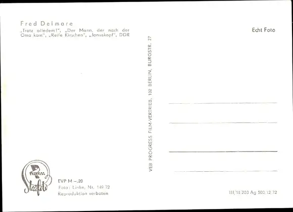Ak Schauspieler Fred Delmare, Portrait, Autogramm