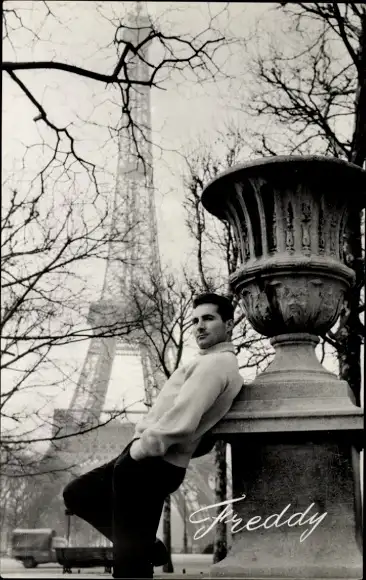 Ak Schauspieler Freddy, Portrait vor Eifelturm