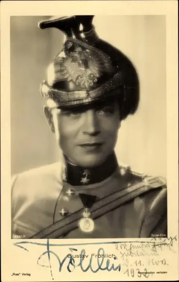 Ak Schauspieler Gustav Fröhlich, Portrait in Uniform, Filmkostüm, Autogramm