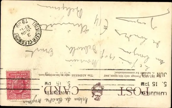 Zustand, siehe Scan, gelaufen, 1909 - ca 9 cm X 14 cm