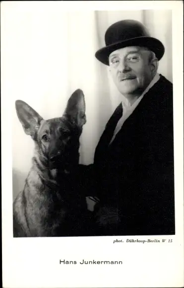 Ak Schauspieler Hans Junkermann, Portrait mit Schäferhund, Autogramm