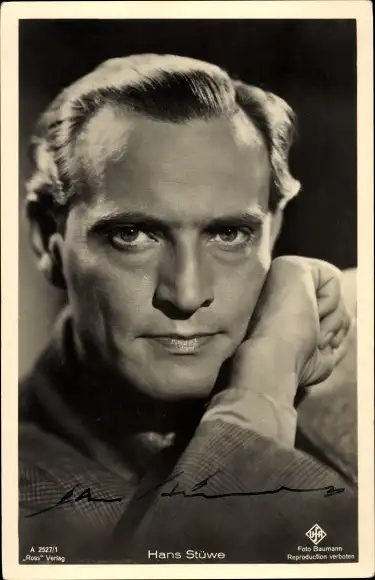 Ak Schauspieler Hans Stüwe, Portrait, Ufa Film, Ross Verlag A 2527 1, Autogramm