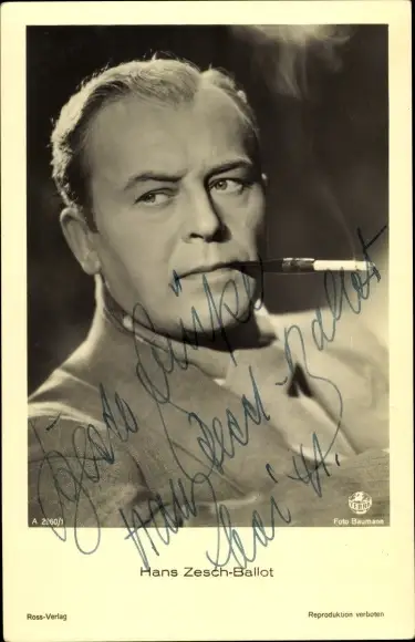 Ak Schauspieler Hans Zesch Ballot, Portrait, Zigarette, Ross Verlag A 2960 1, Autogramm
