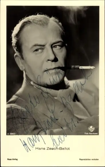 Ak Schauspieler Hans Zesch Ballot, Portrait, Zigarette, Ross Verlag A 2960 1, Autogramm