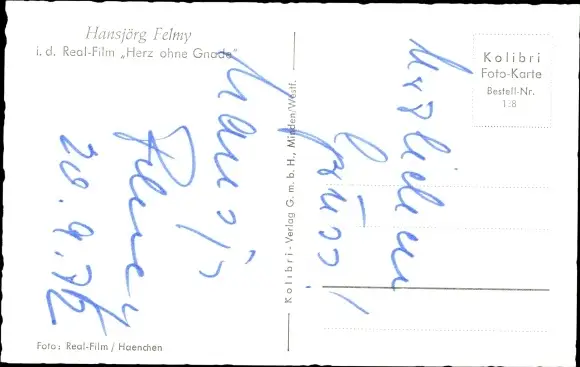 Ak Schauspieler Hansjörg Felmy, Portrait, Herz ohne Gnade, Autogramm