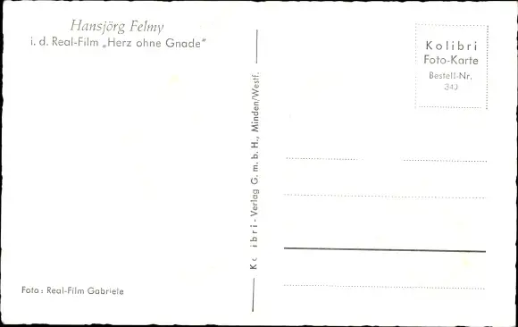 Ak Schauspieler Hansjörg Felmy, Portrait, Herz ohne Gnade, Autogramm