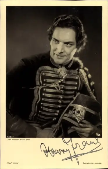 Ak Schauspieler Harry Frank, Portrait, Filmkostüm, Ross, Autogramm