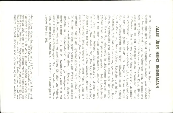 Ak Schauspieler Heinz Engelmann, Portrait, Autogramm