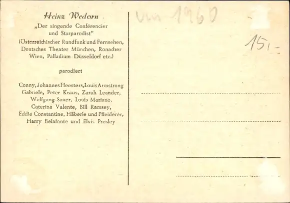 Ak Schauspieler Heinz Wedorn, Portrait, Autogramm, Sänger, Mikrofon