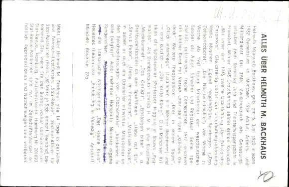Ak Schauspieler Helmuth M. Backhaus, Portrait, Autogramm