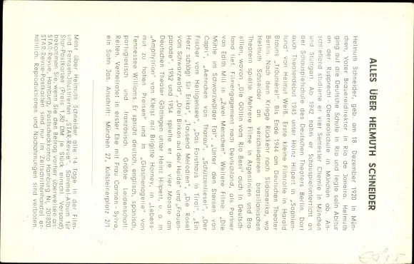 Ak Schauspieler Helmuth Schneider, Portrait, Autogramm