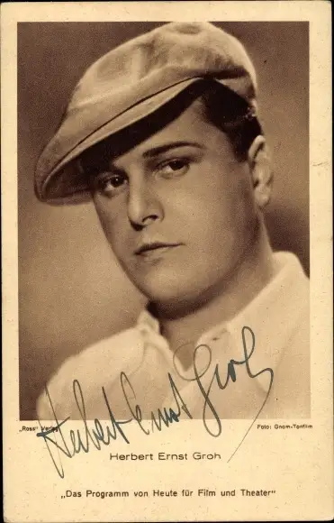 Ak Schauspieler Herbert Ernst Groh, Portrait, Mütze, Autogramm