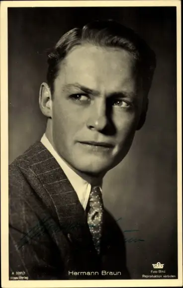 Ak Schauspieler Hermann Braun, Portrait, Krawatte, Anzug, Autogramm