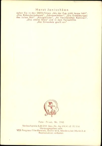 Ak Schauspieler Horst Jonischkan, Portrait, Zigarette rauchend