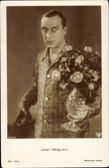 Ak Schauspieler Iwan Mosjukin, Portrait, Blumen