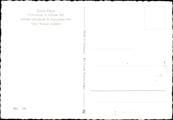 Ak Schauspieler James Dean, Portrait, Warner Brothers