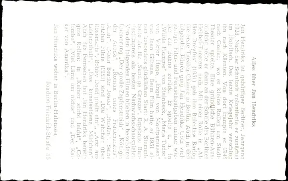 Ak Schauspieler Jan Hendriks, Portrait, Autogramm