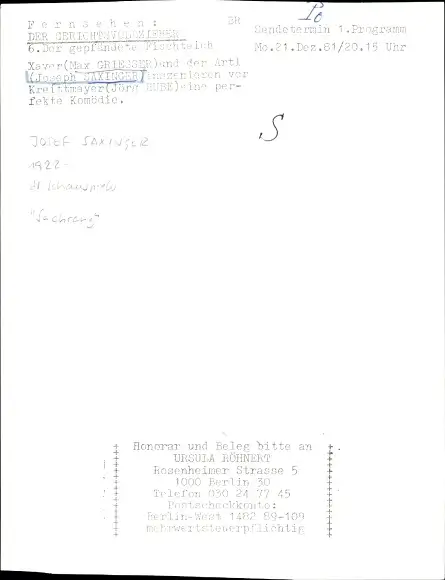 Ak Schauspieler Josef Saxinger, Autogramm, Filmszene