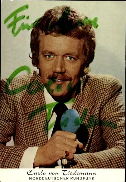 Ak Schauspieler, Journalist und Moderator Carlo von Tiedemann, Portrait, Mikrofon, Autogramm