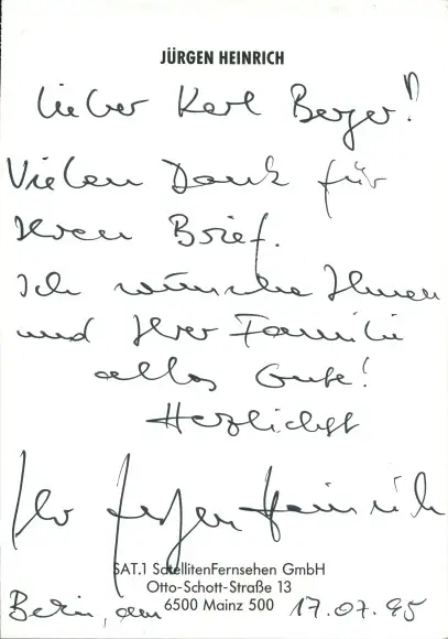 Ak Schauspieler Jürgen Heinrich, Portrait, Autogramm, SAT 1