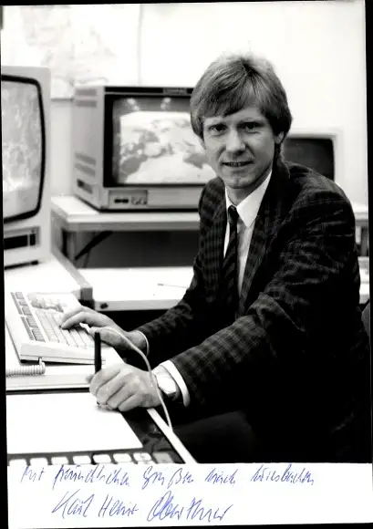 Ak Schauspieler Karl-Heinz Oberthies, Portrait, Autogramm, Computer