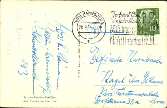 Zustand, siehe Scan, gelaufen, 1955 - ca 9 cm X 14 cm