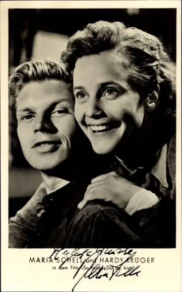 Ak Schauspieler Maria Schell und Hardy Krüger, So lange Du da bist, Autogramm