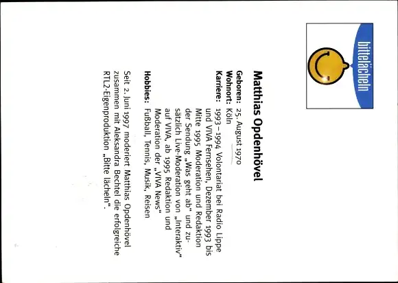 Ak Schauspieler Matthias Opdenhövel, Portrait, Autogramm, RTL 2, Bitte Lächeln