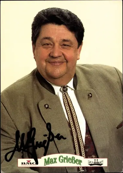 Ak Schauspieler Max Grießer, Portrait, Autogramm, Volkssänger mit Humor und Herz