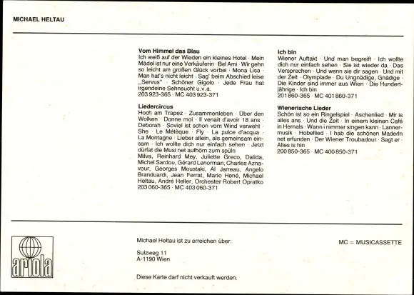 Ak Schauspieler Michael Heltau, Liedercircus, Autogramm