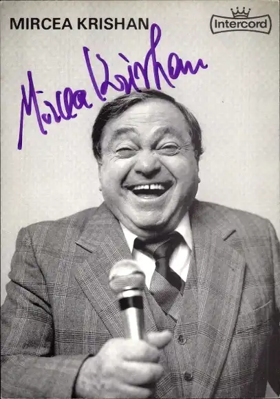 Ak Schauspieler Mircea Krishan, Portrait, Autogramm, Mikrofon