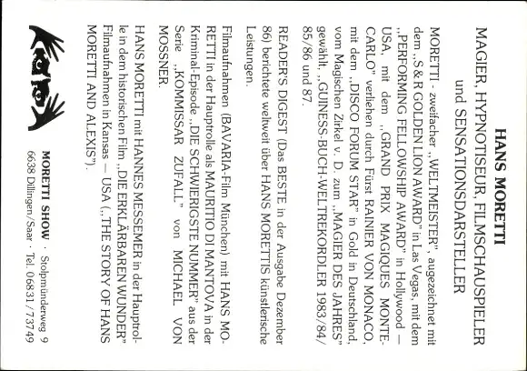 Ak Schauspieler Moretti, Portrait, Autogramm