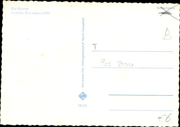 Ak Schauspieler Pat Boone, Portrait, Autogramm