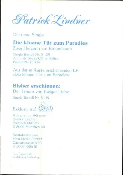 Ak Schauspieler Patrick Lindner, Portrait, Autogramm, Sänger