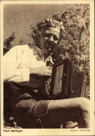 Ak Schauspieler Paul Hörbiger, Portrait mit Akkordeon, Lederhose