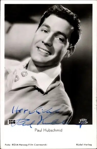 Ak Schauspieler Paul Hubschmid, Portrait, Autogramm, Maske in Blau