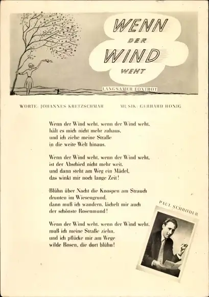 Ak Schauspieler Paul Schröder, Portrait, Liedtext Wenn der Wind weht