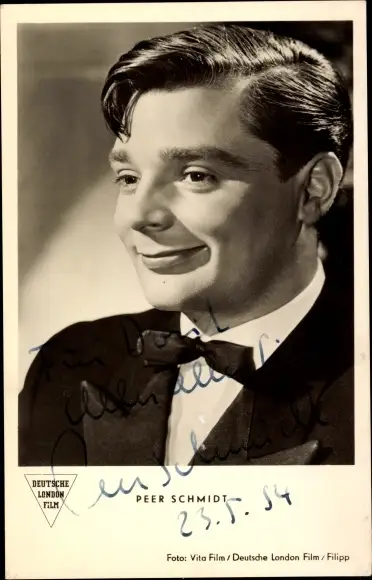 Ak Schauspieler Peer Schmidt, Portrait, Autogramm, Fliege