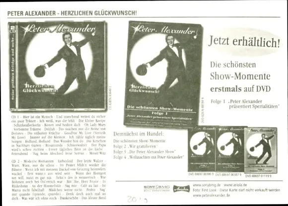 Ak Schauspieler Peter Alexander, Portrait, Autogramm, Sänger