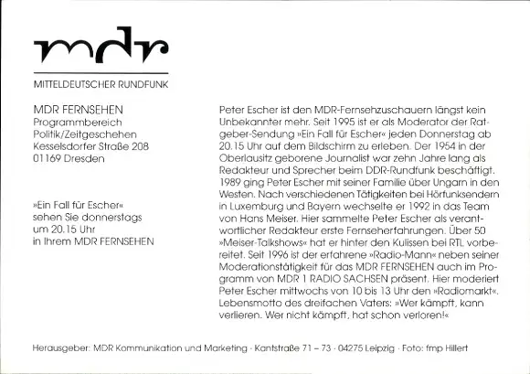 Ak Schauspieler Peter Escher, Portrait, Autogramm, Ein Fall für Escher