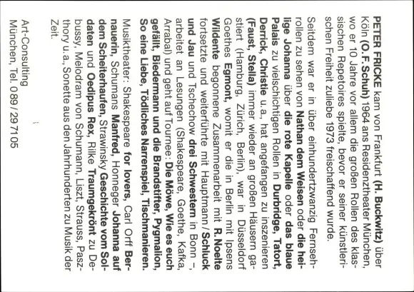 Ak Schauspieler Peter Fricke, Portrait, Autogramm