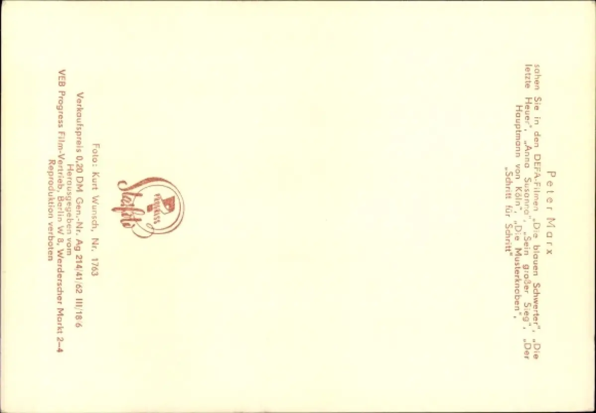 Ak Schauspieler Peter Marx, Portrait, Die blauen Schwerter, Defa Film