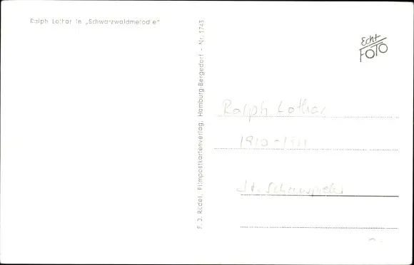 Ak Schauspieler Ralph Lothar, Portrait, Autogramm, Schwarzwaldmelodie