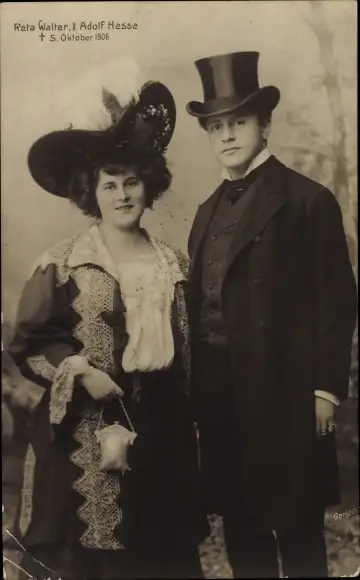 Ak Schauspieler Reta Walter und Adolf Hesse, Zylinder, Handtasche