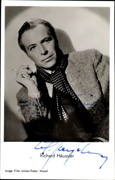 Ak Schauspieler Richard Häussler, Portrait, Zigarette, Autogramm