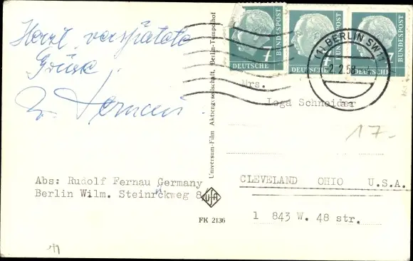 Zustand, siehe Scan, gelaufen, 1958 - ca 9 cm X 14 cm