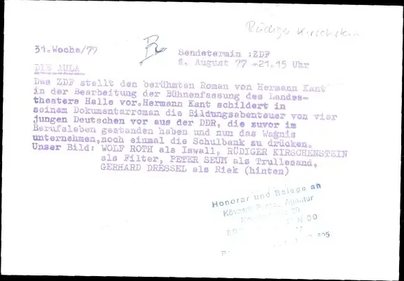 Ak Schauspieler Rüdiger Kirschstein, Portrait, Autogramm