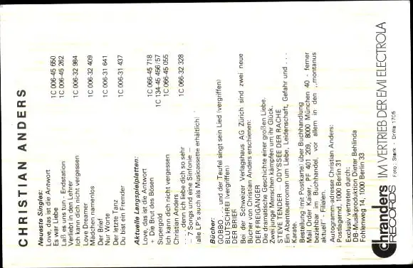 Ak Schauspieler, Sänger Christian Anders, Portrait, Autogramm