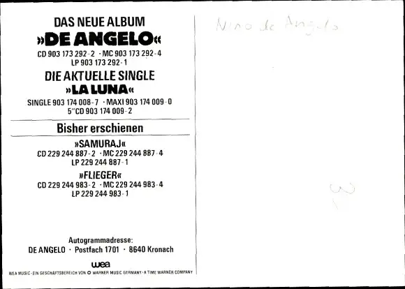 Ak Schauspieler Sänger Nino de Angelo, Portrait, Autogramm
